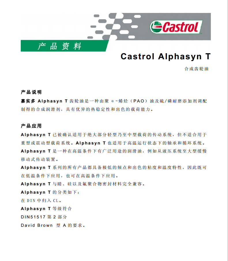 嘉實(shí)多合成齒輪油 Castrol Alphasyn T 32 46 68 100詳細說(shuō)明?。g覽1186次)